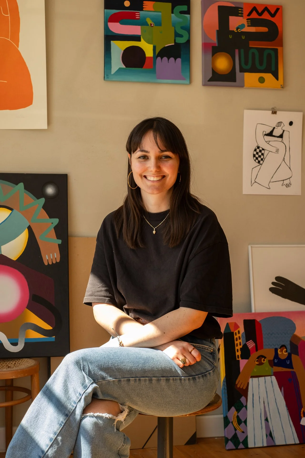Kiki Peter wohnt und arbeitet als Künstlerin und Illustratorin in Berlin. In ihrem Atelier in Kreuzberg widmet sie sich neben der Malerei auch traditionellen Druckverfahren, wie dem Holz- und Linolschnitt. Ein zentraler Aspekt ihrer Kunst ist die Darstellung von Frauenkörpern, die sie mit einem feministischen Ansatz inszeniert. Während die Abbildung weiblicher Körperideale auf Social Media Hochkonjunktur erlebt, machen sich die Frauen in Kiki Peters Bildern nicht klein- und nehmen oft wie selbstverständlich das gesamte Blatt für sich ein.